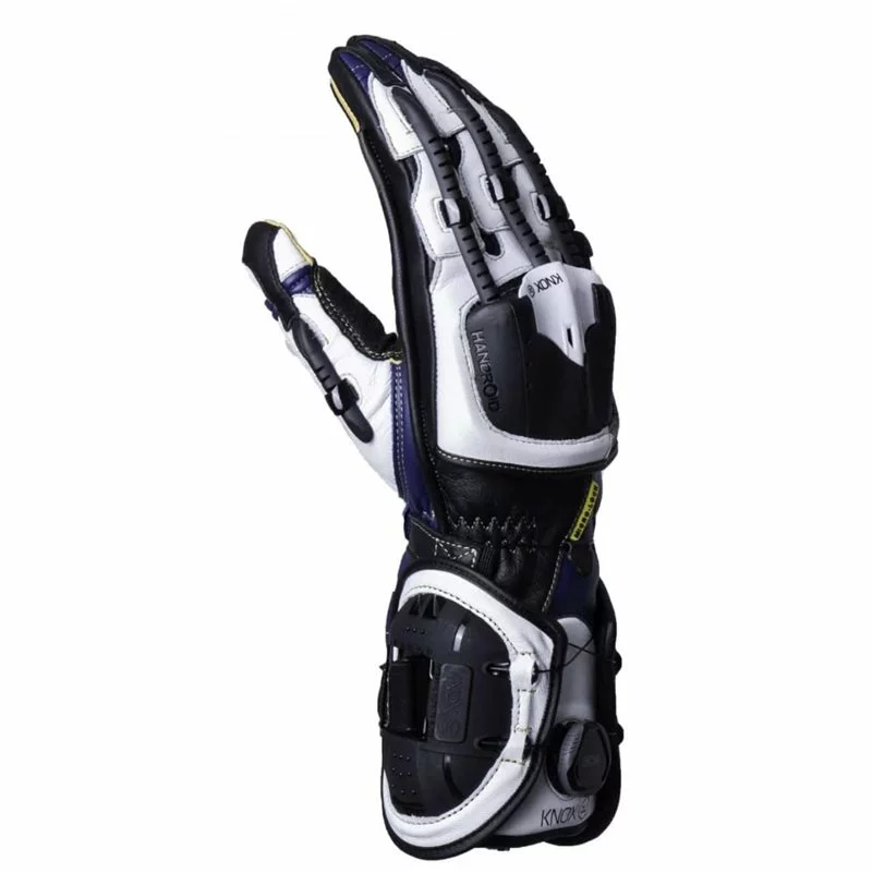 The award winning Handroid set the standard for motorcycle sports gloves a decade ago, due to the unique design and look, including the famous exo skeleton finger spines for impact and abrasion resistance.